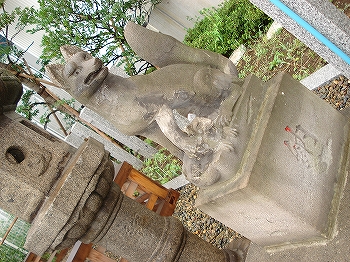 普通は座っている姿ですが、この社では跳ねており躍動感にあふれています」