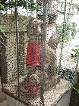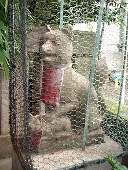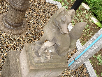 「木陰のもと金網に遮られてしまい写真では判然としませんが、ここも親子キツネの像が据えられています。