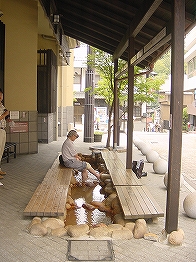 「ふぃ〜、足湯って気持ちいいなぁ〜」