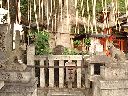 ここは湯山稲荷大明神。鳥居の上に礫を乗せる、一種の願掛けじゃ」