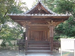 身舎は八角形でありながら、前面には一間の向拝、背面には六角形の後房が認められる。